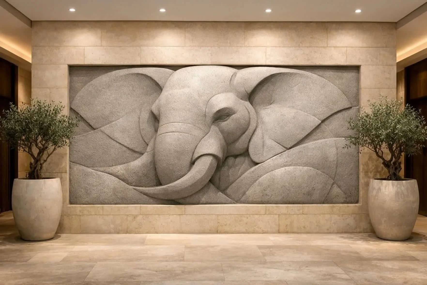 Any physical sculpture or mineral artwork selected from our existing models may be produced in various dimensions ranging from 3 meters up to 10 meters (118 to 394 inches) , and crafted exclusively in stone, including gray and yellow sandstone, white and grey marble,or sandstone composite, depending on the project requirements.